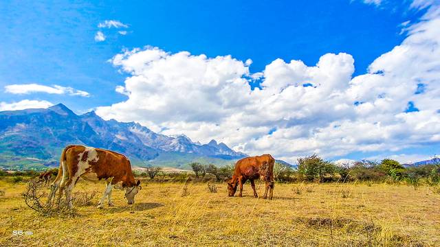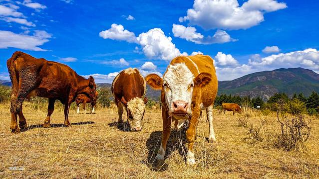 这里的牛有的壮硕可爱,有的又瘦骨嶙峋,不过都一点不怕人,而且还很会【摆拍】,要么做一个“安静的美男子”一心只有草,要么抢镜还会看镜头????