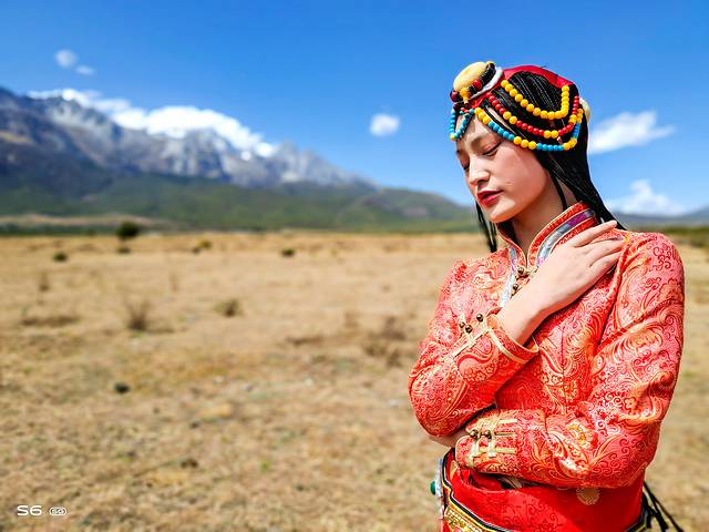海拔只有2000多米的玉龙村,光线明媚,通透,配合手机人像模式,智能补光,宛如那画中走出的美女,又宛如早是那画中人。