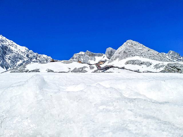 玉龙雪山的积雪,享受冬日的白雪世界。