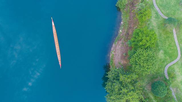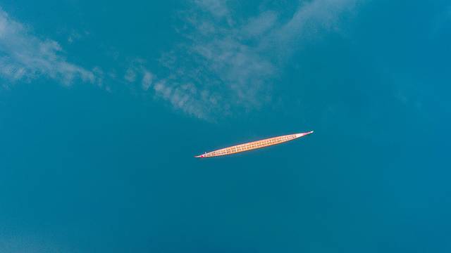 即便是白天,都能感受到从湖面吹来的微风,湖上静静漂着一叶小舟,这绝对是现实版的世外桃源,格外安静美好。