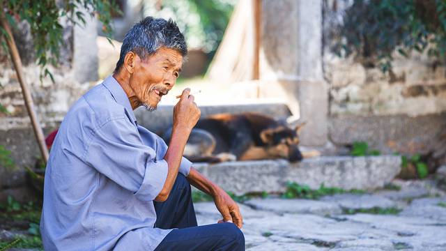 古村有无数民居,灰黑的瓦片屋顶,斑驳的老墙头连成一片,这里大部分的房子还住人。