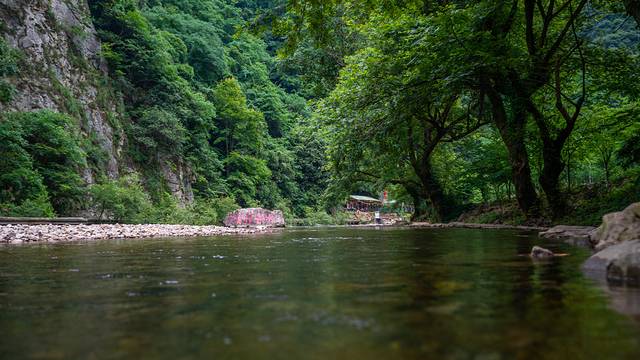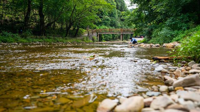 踩着脚下的鹅卵石,徜徉在大山中,太阳在重重树林的遮挡下没有了刺眼的光线,山中绿色的树木和清澈的河水映入眼帘,浸润到肺里的冷空气,一下子就冲散了一路以来的周波劳顿。