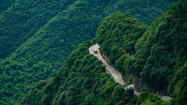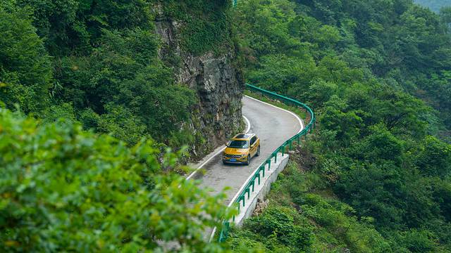 沿着蜿蜒的山路,盘过几座山头,边欣赏着盘山公路环绕在山间的风光美景。桃岭公路的车道宽度仅够两辆车行驶,狭窄的地方车轮甚至需要压在路基外,开得让人手心冒汗。