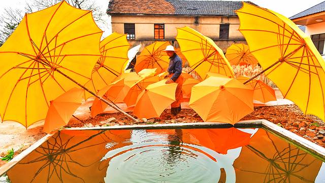 泾县的早晨,阳光早早挂上树枝,来到孤峰村,只为寻找记忆中的那一抹黄。车子开到昌桥乡,孤峰村有着每一个徽州村落的模样,上了年头的瓦片房前,老人躺在竹条椅上乘凉,斑驳泛黄的墙面,攀爬着枝丫的影子,在这个安静的村落里,藏匿着一个制造油布伞的手工作坊。