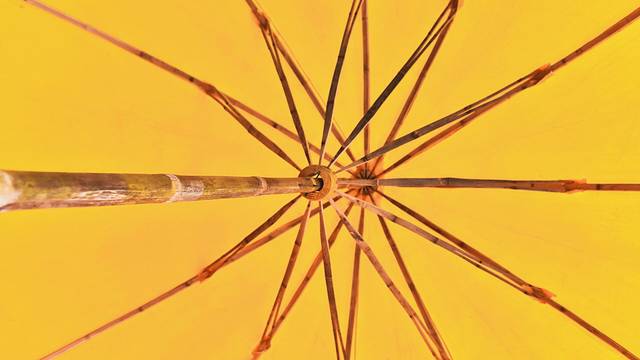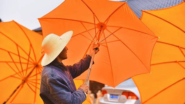 毛竹制成的伞柄和伞骨,拿在手上有一种沉甸甸的感觉,素雅的橙黄色,撑起来,仿佛回到了民国时光。现在的油布伞不仅是日用品,更是寄托着几代人情怀的文化印记,虽然没有纸伞的浪漫,也没有自动雨伞的轻盈,但坚固、廉价、实用,凝结着皖南手工艺人独有的技艺,而这门古老的传统伞技工艺理应世世代代传承下去。