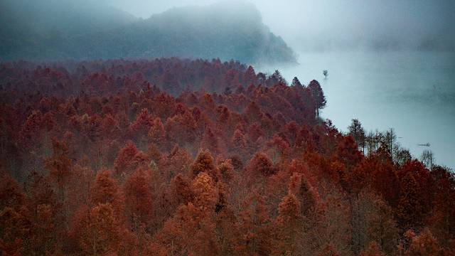 这片落羽杉树形整齐,近似羽毛状的叶丛十分秀丽,一棵棵高耸入云,春夏季枝叶碧绿,到了深秋初冬,翠绿的落羽杉树叶就会渐渐变得金黄,随后全部变成红色。如果想记录这片美景,最好用无人机,因为从天上俯视的视角比地上仰视来得更壮观。