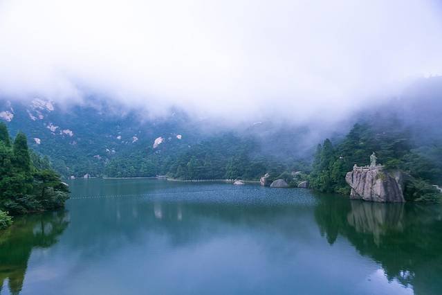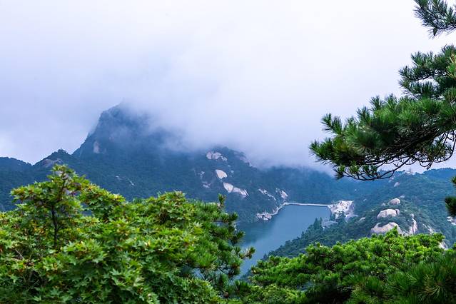 而最终不得不说的,就是我们第二天上午的目的地炼丹湖了,作为天柱山景区的著名的景致,炼丹湖的大名对于游人来说,真的可以说是无人不知,无人不晓了,炼丹湖坐落于天柱山诸多山峰的山坳处,群山环绕之间,形成的一片相对狭长的湖泊。