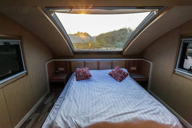 这里的住宿比较有特色,主要是房车和木屋,此外娱乐项目也不少,垂钓、拓展、K歌、篝火、看星空,在这里还可以吃到原生态的美食。