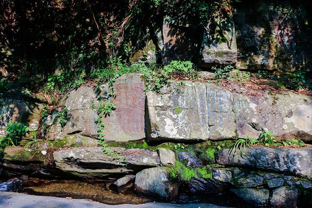 山谷流泉最为知名的是这里的摩崖石刻,在其嶙峋的各种石头之上,刻满了各种文字故事。