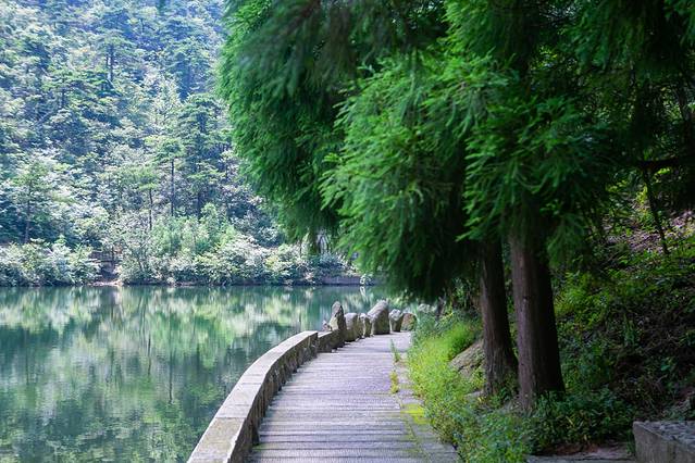 而等我们在回音台玩够了,则可以回转到会景亭看一看天柱山景区的风景,其后回转到炼丹湖,泛舟湖上,看这两岸的崇山峻岭,看这两岸的游人如织,浮生偷得半日闲,相信泛舟湖上的这短暂的时光,会成为你此生难忘的记忆。