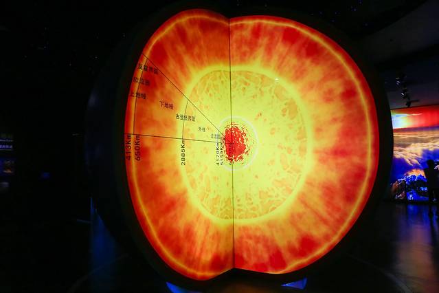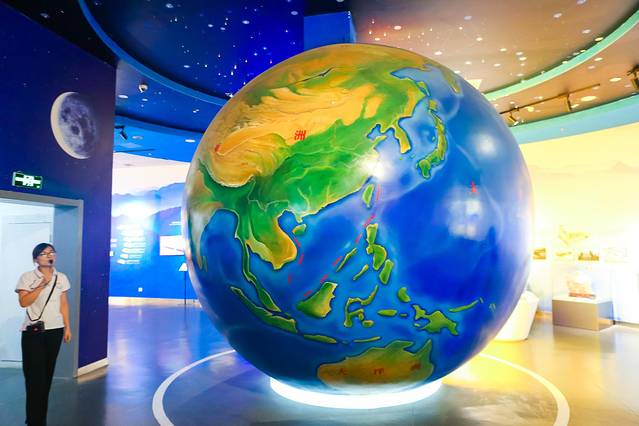 这里的展厅分为三层,第一层是奥秘厅、二层生命演化厅、三层民俗文化厅,集中展示天柱山地质公园的综合价值和区域地质地貌形成演化历史,揭示地区地质、生物和文化多样性之间的关联。