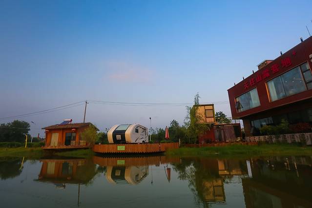 这是一个坐落在天柱山脚下的露营乐园,这里一半山景,一半湖景,木屋别墅,造型各异,坐在露台上看着窗外的满天星辰,理想的生活,或许就在天柱山下实现。