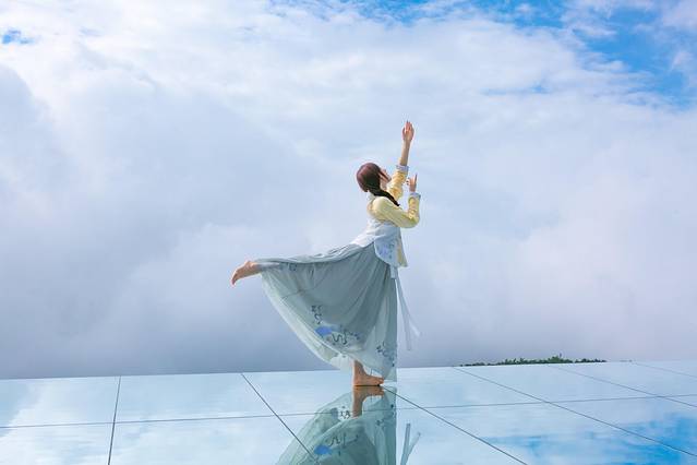 下了索道就能看到一个高台,天柱山的天空之境,群山倒影,美到极致,打卡好去处。