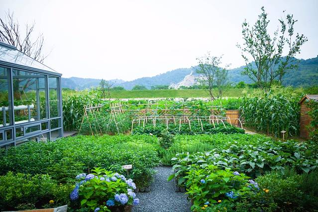 跟着管家沿着这条乡间小路进山,沿途虫鸣鸟叫、空气清新,旁边一条小溪顺流而下,远处几重大山过滤掉了城市的嘈杂和浮躁,远眺那些人间烟火,好似,红尘在另一个世界,你看得见它,它看不见你。