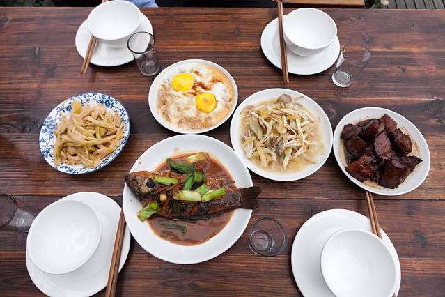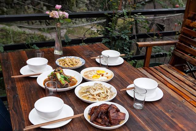 我们在”同学家“二楼露台体验了露天晚餐,简单的农家菜,却很好吃。特别是这里的红烧肉,肥而不腻,貌不惊人味道却十分惊艳,赢过普通的餐馆简直是毫不费力。