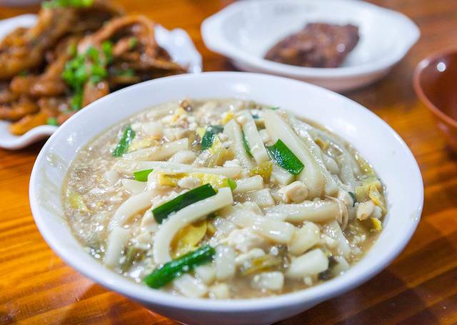 到了嵊州必不可少的就是美食了,精致的嵊州小吃,还有美味的山间小菜,单独罗列了一下这几天的好吃的。嵊州的炒年糕,跟其他地方的炒年糕有些不一样,通常我们吃到的年糕基本就是汤年糕或炒年糕,嵊州的年糕却有汤年糕、炒年糕和烤年糕三种做法,而且通常我们知道的年糕都是糯米做的,这里的年糕则是稻米做的,口感更有嚼劲,来嵊州必吃。