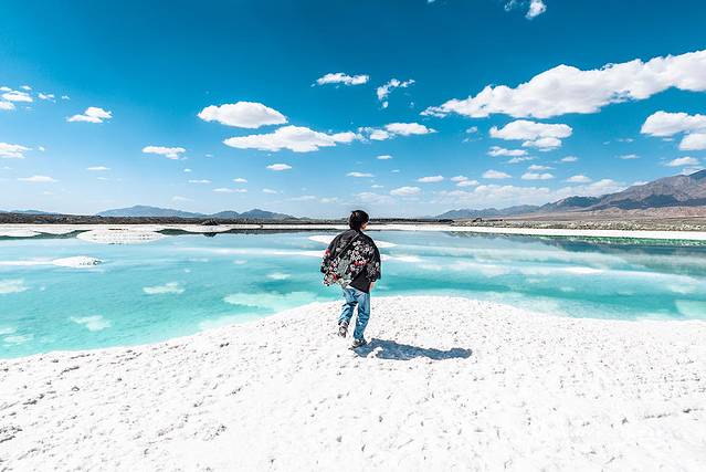 这片未被开发的盐湖,清得像天空之镜,松软的白色盐碱地,像马尔代夫一样薄荷蓝的湖水,出淤泥而不染的蓝,再华丽的辞藻也不能代表感同身受、身临其境的美,美的令人记忆犹新,无法忘怀。