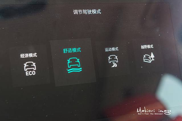 由于接下来会面临非常严峻的路况,所以我轻点驾驶模式,选择了最右边的越野模式,这时领克01的博格华纳智能四驱就开始启动,配合沃尔沃2.0T的发动机,一场旷野的越野之旅就此拉开帷幕。