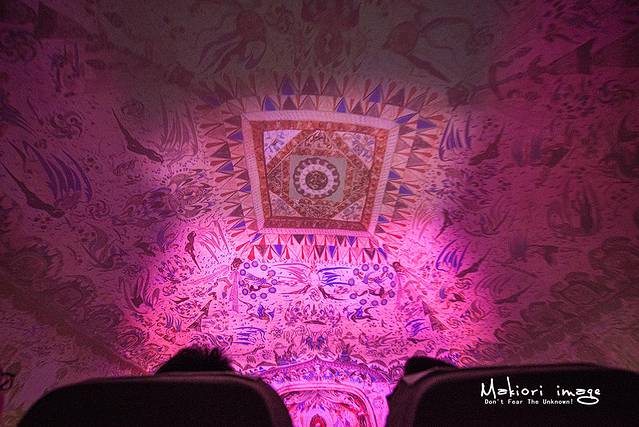 球幕电影《梦幻佛宫》,确实让我惊艳了一把,整个头顶都是一块巨大的球型幕布,随着影片的播放顿时有身临其境的感觉。例如下图的45号特窟,窟内有7尊彩塑,4幅壁画,顶部还有千佛。球幕电影几乎能把洞窟的原样展现在我面前,除了色彩稍微有点出入,其他都是1:1原样,大家可以和下图的照片进行比较。