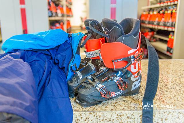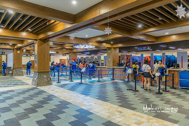 进入后,根据自己的体型去租滑雪服和滑雪靴,同时可以租柜子寄存物品,20元一个。