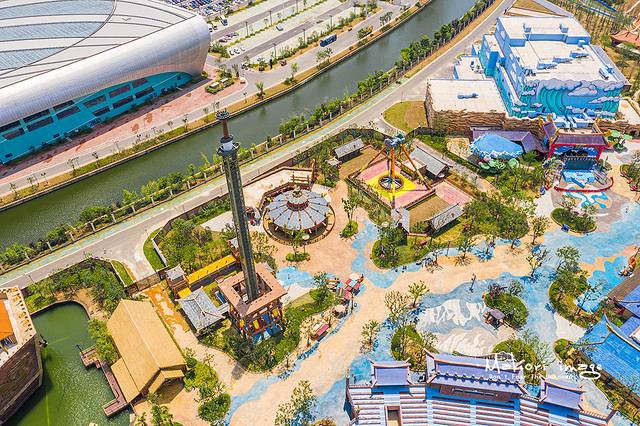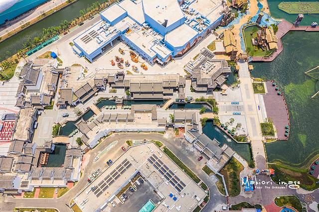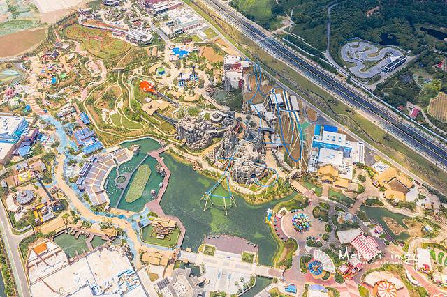 飞起无人机上帝视角一览,融创乐园以传统江南文化为主题,设计了运河人家、泡泡泉小镇、霞客神旅、蒸汽时代、田园欢歌、冒险港湾六大主题园区,拥有34台一流游玩设备,其中7台为国内首台,皆由世界知名设计公司设计。游客既可体验大型黑暗乘骑“西洋惊涛”带来的震撼效果,也可以感受大型舞台剧“蒸汽时代”的蓬勃激情,还可以乘坐世界顶级“飞翼过山车”,体验肾上腺素飙升的惊险刺激。