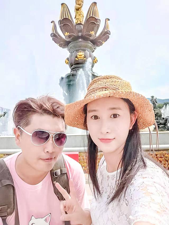 几年前,也是摸佛掌沾沾喜气,若干年后,再次看到这个硕大的佛站,她立即跑了上去,双手都贴了上去,回头一个微笑,温暖又亲和,都说岁月是一把刀,即使时光蹉跎,彼此之间的情意却只会越来越深沉。