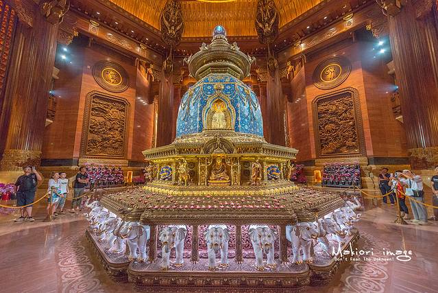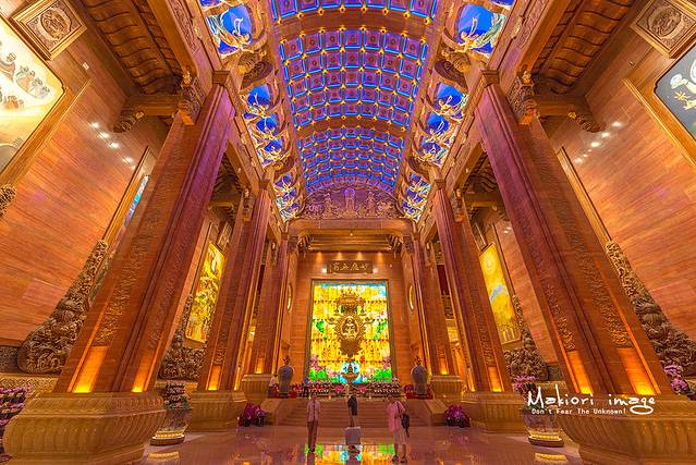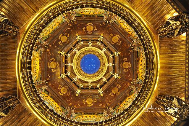 由于吉祥颂是不能拍照的,所以我拍了最上方的穹顶,这个穹顶百看不厌,会不断变化灯光颜色,非常的绚丽夺目。然后就是超震撼的3D巨幕效果的演出,讲述了释迦摩尼佛的诞生和由来,炫丽的360度舞台,配合精美的舞台灯光,让所有人的大开眼界,感叹声连连,一花一世界,一叶一菩提。