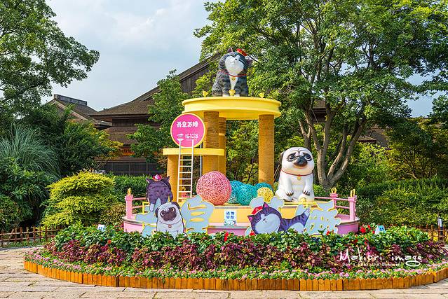 仔细品味,小巷子里的一砖一瓦都是经过匠人近乎疯狂的精心设计,连随处可见的苔藓都是多番挑选。从一片瓦、一丛苔藓、一排篱笆、一片竹林,充满日式和风的建筑、精巧质朴的禅意装饰,都能看出这个禅意小镇的用心。一步一景,加上吾皇的随机出现,更是适合拍照。