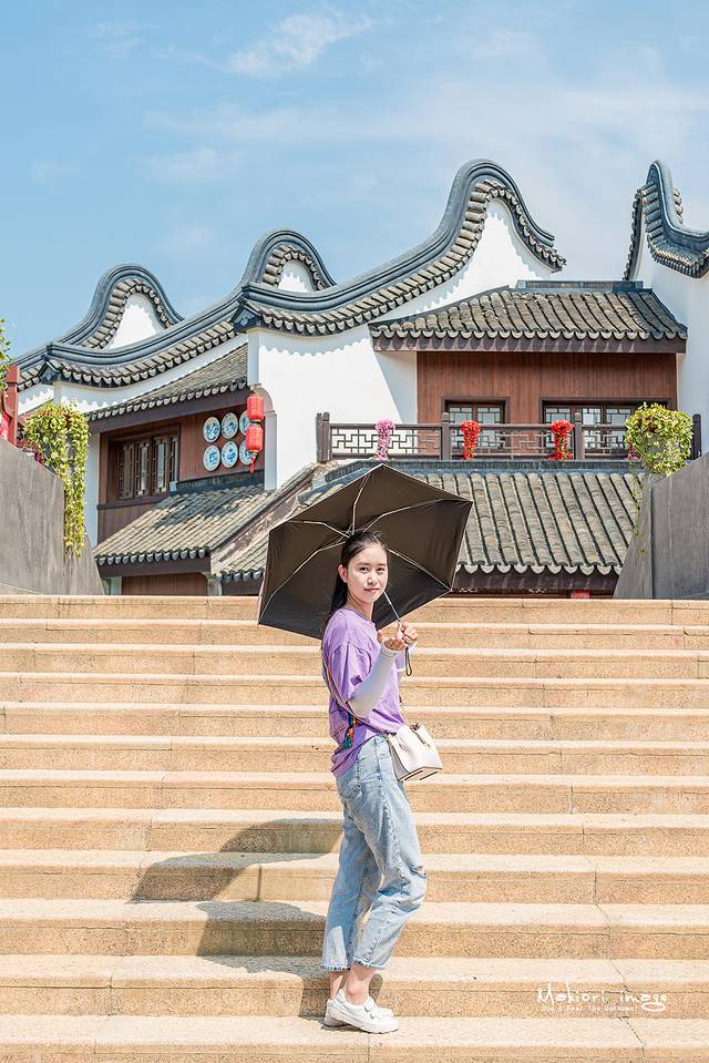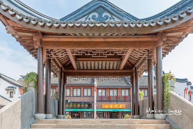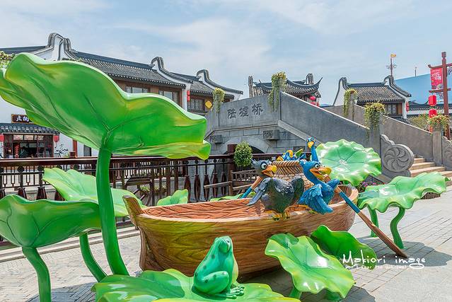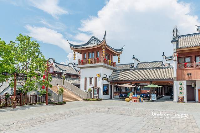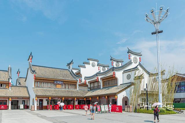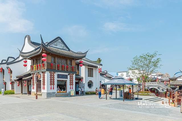 闲步在运河人家,不经意地一睹,小桥悠悠一片天然,定有美景蕴含其中。韵味十足的江南水乡区域,不像普通的乐园餐饮休闲区那样店铺林立,而是结合水乡不同的建筑结构安排,转进月洞门,穿过水榭才能偶然见一两间铺子,没有过多的商业气息,这一点值得点赞。