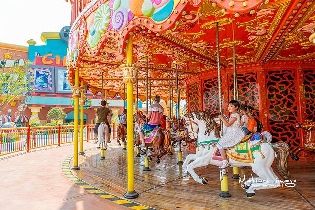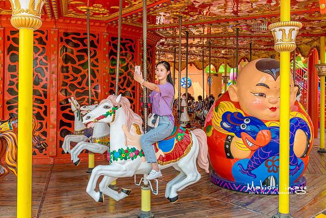 双层的结构设计,斑斓的色彩,配上绚丽的灯光效果,在夜晚观赏性加倍,带上另一半一起在这里策马奔腾,一点都不俗气哦。