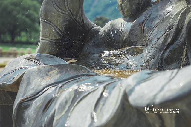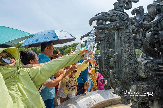 随着佛音的加持,整个广场的游客都目不转睛的看着中间的佛祖铜像,不少人双手合十,闭上眼睛,嘴里念念叨叨,庄严,肃穆,慈悲的情绪回荡在每个角落。我们也赶紧拿了瓶子去灌水,至于水当然也不用来喝,回去放鱼缸里,就当给鱼改善下生活环境吧。