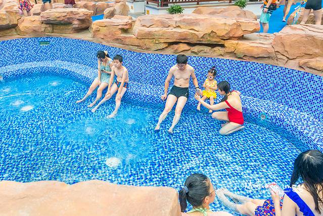 玩累了,最后还可以在这里泡泡温泉,水世界还设有江南特色的仿古楼阁,里面隐藏着舒缓身心的古镇汤泉,玩累了可以到这里泡个汤。