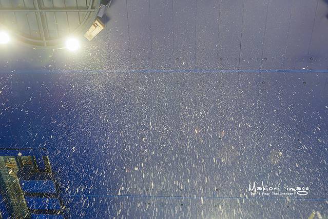 抬起头,瞬间就发出了哇的一声,漫天飞舞的鹅毛大雪铺天盖地,24小时不间断运转的造雪机,满足了南方的孩子漫步在雪花中的幻想。