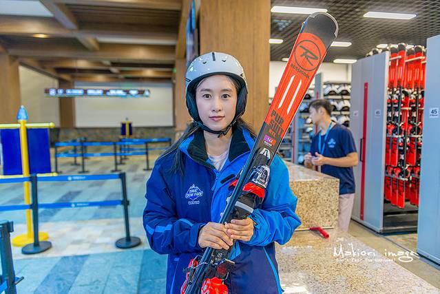 穿戴完毕后,走路会发现不听使唤,感觉像是机器人行走一样生硬,对于初次滑雪的人而言,确实稍微有点不习惯。她兴致勃勃的穿戴好专业设备后,迫不及待的就拉着我,赶紧下去开启人生的第一次滑雪尝试。
