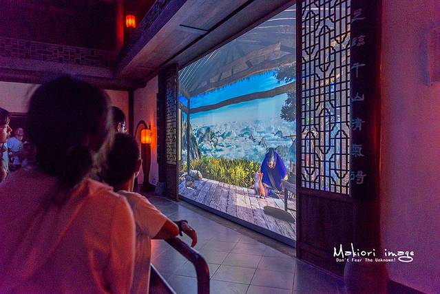 水幕电影《禅行》,使人仿佛穿越千年,在无垢无净的禅境山水中,体验最美的禅意生活方式。在闲心斋,游客可以看到一位妙龄少女正弹着古琴,但其实她并不是真人,而是全息投影而成,投影和茅屋的景象亦随着歌唱张弛有度地转换。