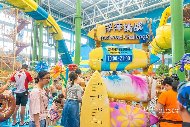 风雨同舟的旁边是浮萍挑战,这里更加的适合儿童嬉水,方便一些不会游泳需要陪伴的宝宝们,初次尝试玩水的快乐。