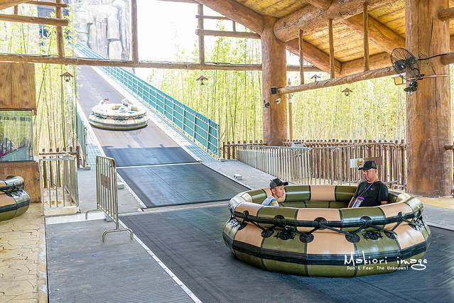 排队后耐心爬到顶端,每一个橡皮船能坐6个人,除了手机外不能携带任何东西,因为下降的过程中会经历速度很快的弯道,离心力非常大,需要大家紧紧抓住身前的把手,防止自己飞出去。