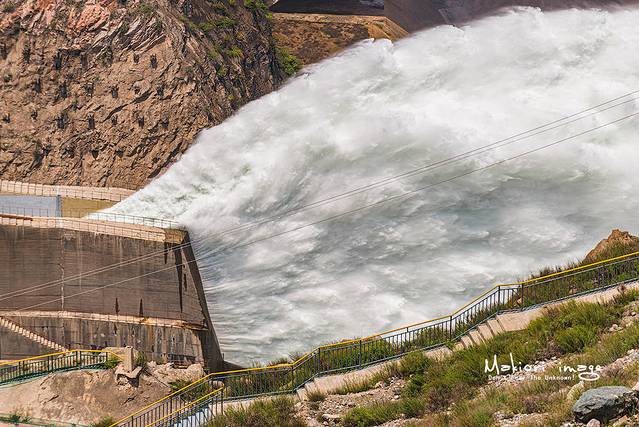 由于前阵子持续不断的降水,造成了水库的水位增高,我们竟然遇到了难得一遇的泄洪奇观。汹涌澎湃的水,咆哮着从大坝泄洪口喷涌而出,溅起的浪花气势霸道,仿佛吞噬一切的张力,发出震耳欲聋的声音回荡在整个山谷。