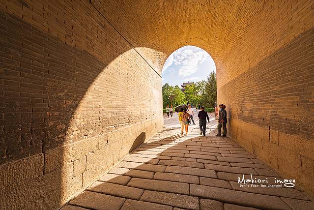 对于明代而言,从嘉峪关出去就是出国了,需要跟唐僧一样手持通关文碟才可,等同于现在的护照。走在凹凸不平的石板路上,看着阳光在通道里变化着角度,顿时一种强烈的岁月感涌上心头。