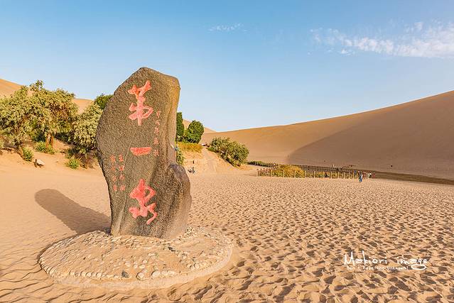太阳逐渐升高,气温也越来越热,不一会儿脚下的沙子开始变得开始滚烫。鸣沙山月牙泉也随着游客的增多,开始人声鼎沸起来。鸣沙山和月牙泉这对大漠戈壁中的伴侣,山以灵而故鸣,水以神而益秀。