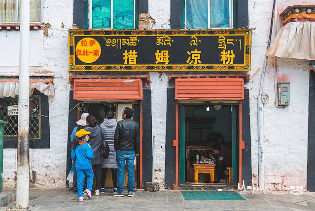 拉萨有没有网红店?答案是肯定的,比如下面的措姆凉粉。凉粉,凉面,宽粉都差不多,但是我觉得最好吃的是宽粉,凉粉真心一般,宽粉吃起来很有嚼劲很Q弹,炸土豆其实也就一般般,有点老,听周围的食客说,不如光明家的炸土豆。不过,它家很多当地人也来吃,可想而知味道还是有保障的,我反正很喜欢他家的牛奶,喝下去胃非常的舒服。