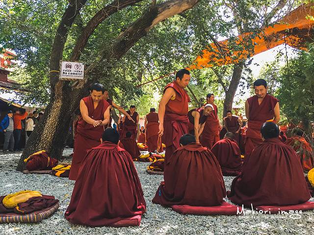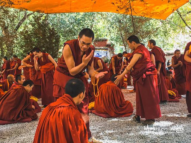 一场辩经下来,就像是看一场热闹一样,基本上还是一无所知。可是它的魅力在于让人感受到了热情,感受到了氛围,我坐在一边许久不禁感叹,在西藏这片纯净的蓝天白云之下,有关于信仰的那种虔诚、简单和专注,从而精彩万分。