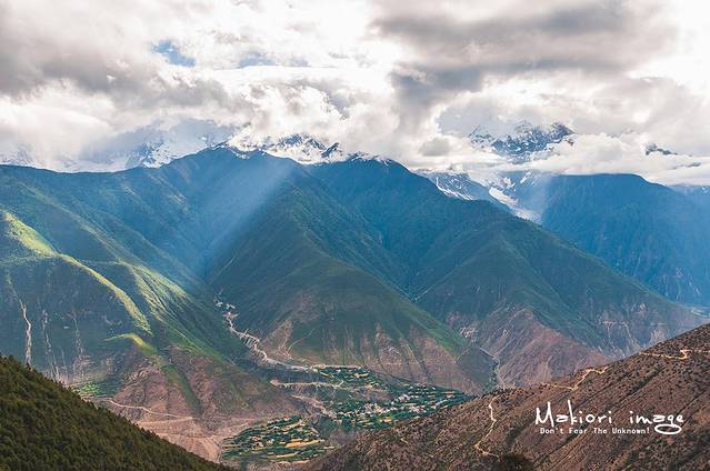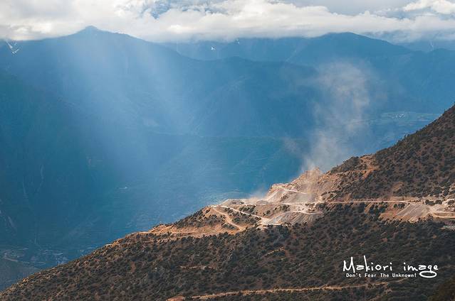 常年的云雾缭绕,让梅里始终披上神秘的面纱,耶稣光照耀在山坡上,显得神圣而又静谧,车轮卷起的烟尘弥漫四方煞是好看 。梅里雪山的脚下有着数个小村庄,比如西当和徒步天堂雨崩,栖息在神山脚下,也许是一种生来的幸福。
