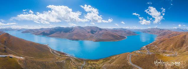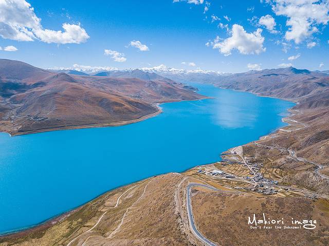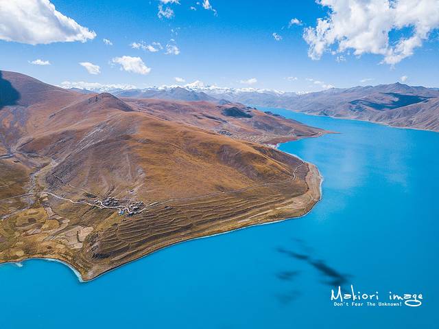 无人机快速的朝羊湖腹地飞去,虽然西藏有着很多令人惊艳的湖泊,但我还是拜倒在了她的石榴裙底下。羊湖中的水主要来自冰雪的融水,纯净的湖水配上悠悠的白云,这是欣赏她魅力的正确方式。