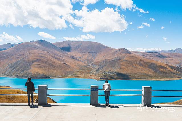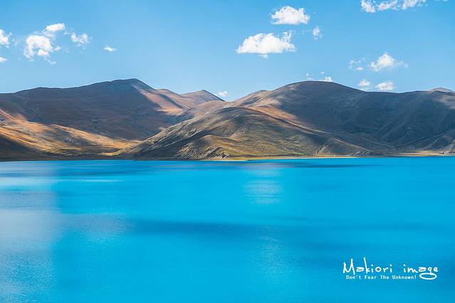 我去过纳木错,去过玛旁雍错,去过班公错,去过阿里地区很多不知名的高山圣湖,本以为羊湖也不过尔尔。直到我下车看见它的一瞬间,我就知道自己错的有多离谱。羊湖的蓝,蓝的魔幻,蓝的霸道,阳光白云的映射下,湖面的颜色竟然也会有斑驳的分层。我不敢直视她许久,因为我害怕自己的灵魂会被吸入这深邃的蓝中,我站在观景台上久久不动,内心受到了极大的冲击,太美了……