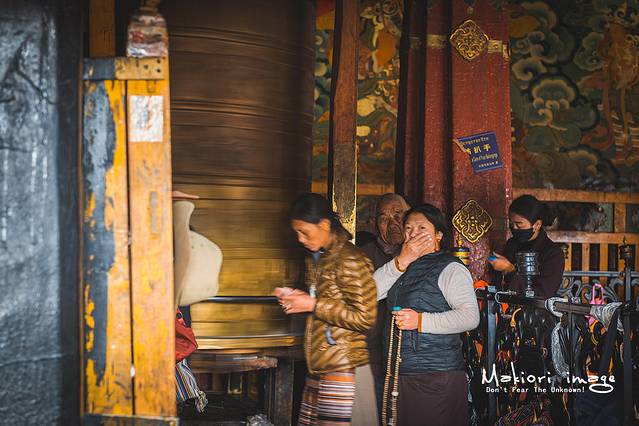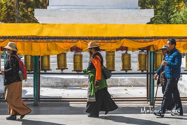 他们之中有的手拿经筒,有的手拿串珠,各个喃喃自语,他们到底在祈求什么呢?无论什么原因,当我与这些虔诚的信徒眼神交会时,也会被眼神里流露出的信仰与精神追求的气氛所震撼和感动。