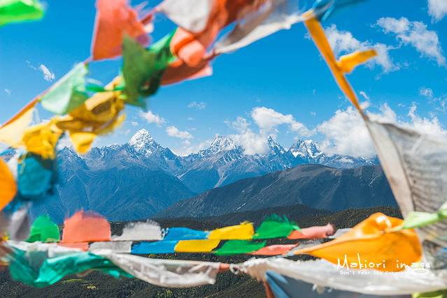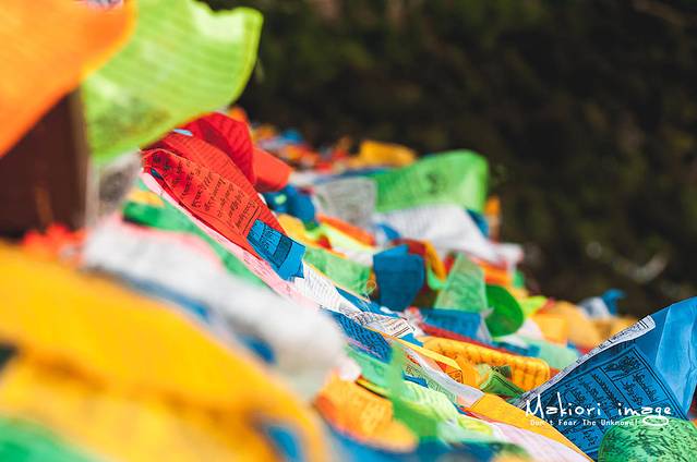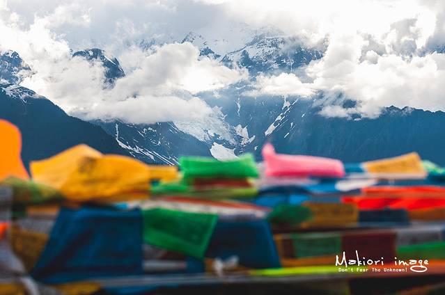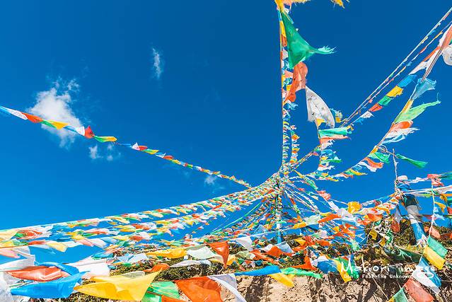 彩色的经幡,在垭口随风飘扬,我还记得第一次见到经幡时的兴奋之情,只是纯粹的觉得好看罢了。之后才知道经幡的意义,经幡上面都印有佛经,在信奉藏传佛教的人们看来,随风而舞的经幡每飘动一下,就是诵经一次,在不停地向神传达人的愿望,祈求神的庇佑。这样,经幡便成为连接神与人的纽带,寄托着人们美好的愿望。