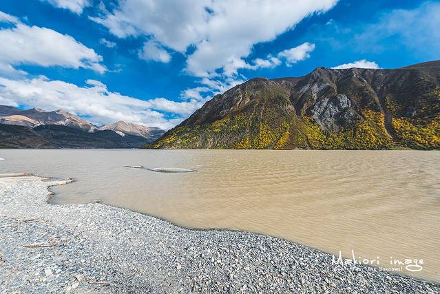 再次邂逅然乌湖,原本以为能看到湛蓝的天空映衬在湖水中,令我大失所望的是湖水是土黄色的,清澈湛蓝的模样不见踪影,一问才知道是因为雨季的原因。雪山融水带来的泥沙使得湖面呈现混浊的颜色,只有深秋过后不再降雨,雪山不再融化的时候,然乌湖才会像我当年记忆里的模样透心的湛蓝。