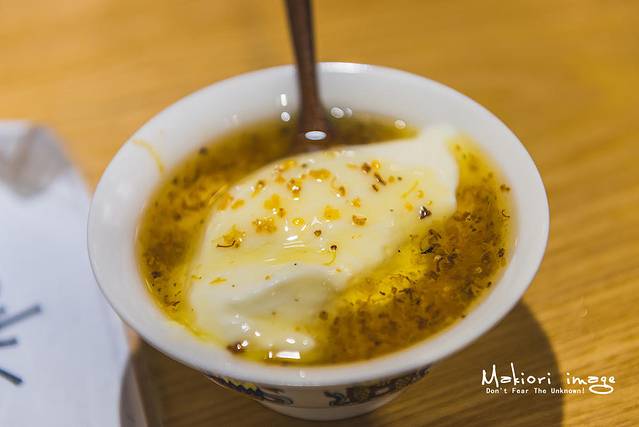 点了招牌的桂花酸奶,真心觉得点对了,这种组合我也是第一次吃到。酸奶同样是手工酸奶,吃上去感觉像二次发酵出来的,口感细腻,味道浓郁,配合解酸的桂花蜜堪称绝配。