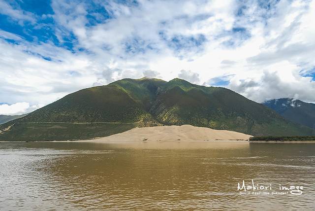车辆调转方向,穿梭在雅鲁藏布江大峡谷里,眺望左边远处的“丹娘佛沙丘”,不禁感叹造物者的神奇。这个大沙丘是经过的河沙不断堆积而形成,筑成了一道独特的风景线,如今更是成为了地标。